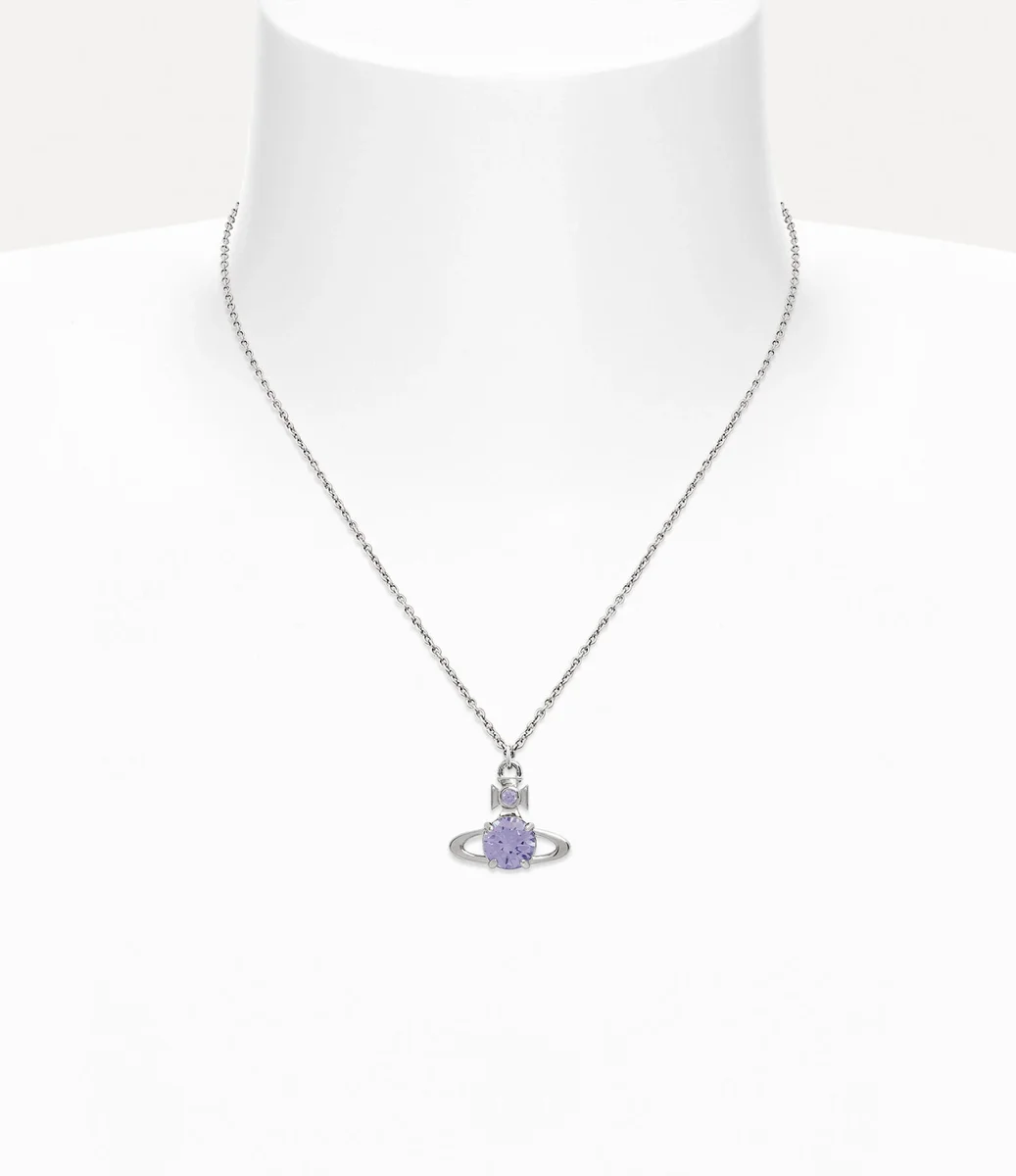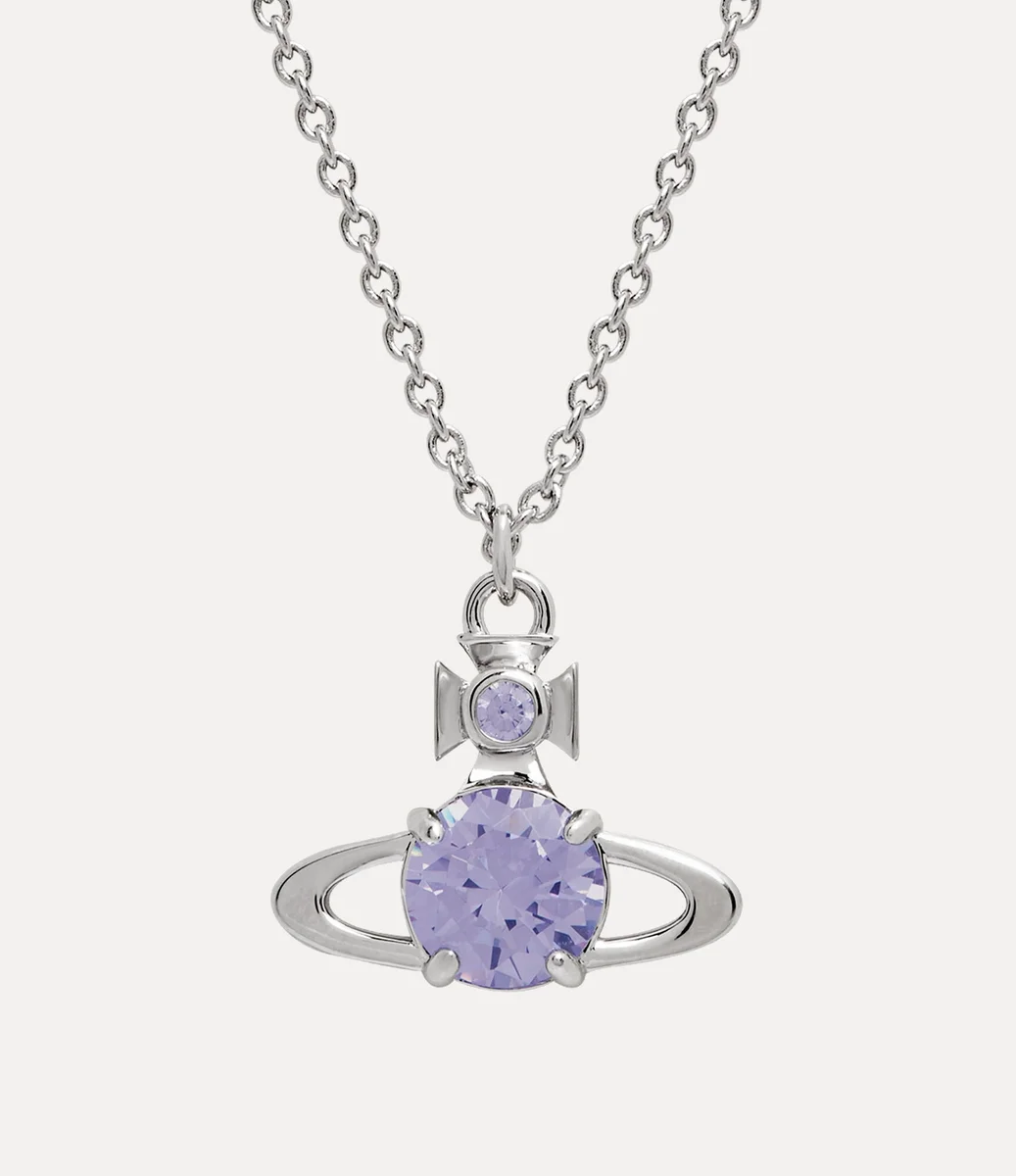 Vivienne Westwood Reina Large Pendant necklace in silver-toned plating features the classic two-dimensional orb shape encrusted with light lavender crystals.