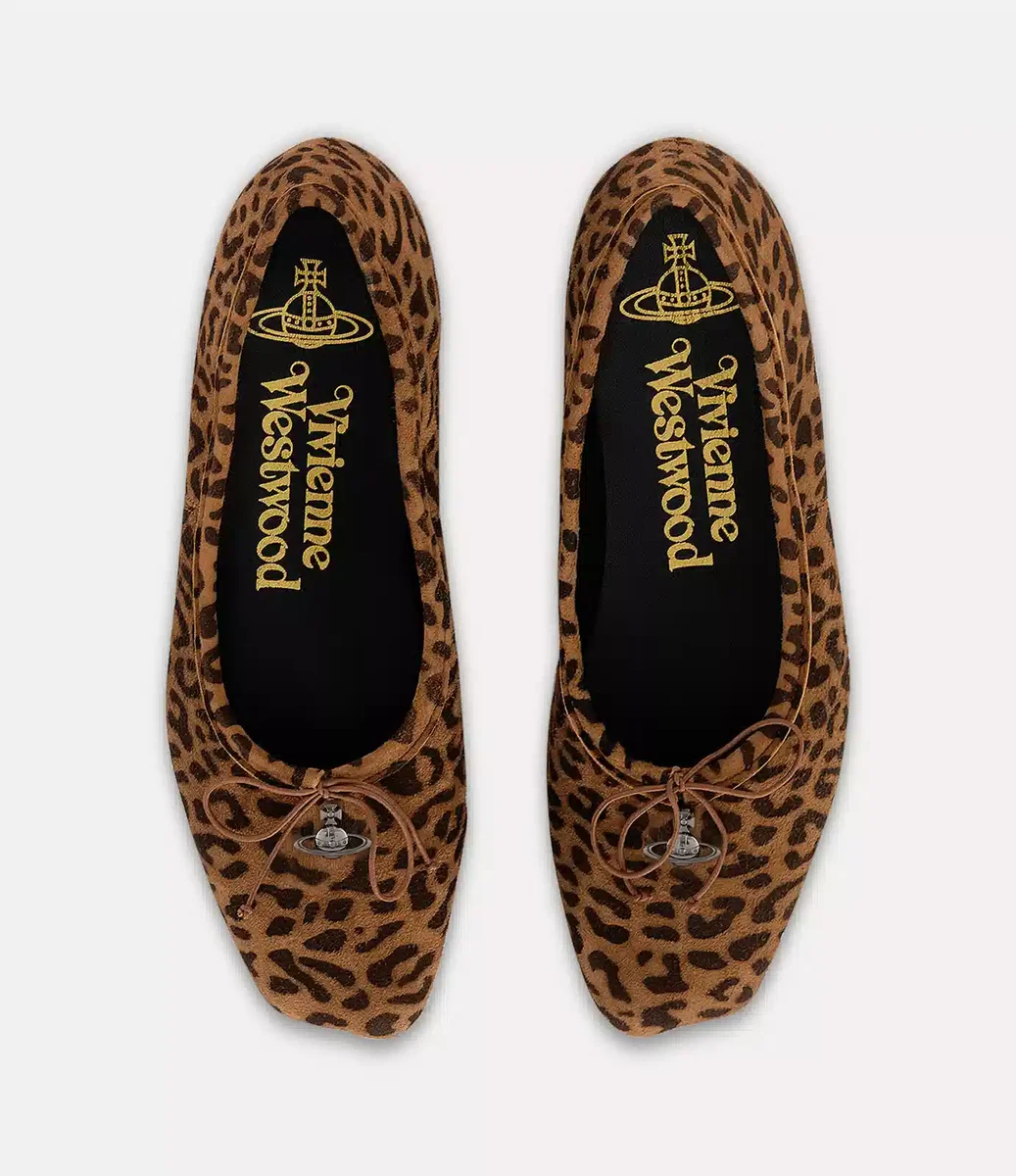 Our Brigitte Ballerina shoe features an anatomical silhouette, reminiscent of the house’s signature ‘Animal Toe’ motif, first revealed in the Spring-Summer 2000 collection, ‘Summertime’. Crafted from leather, the piece is offered in a vintage-style leopard suede, complete with a three-dimensional orb motif at the front of the design.