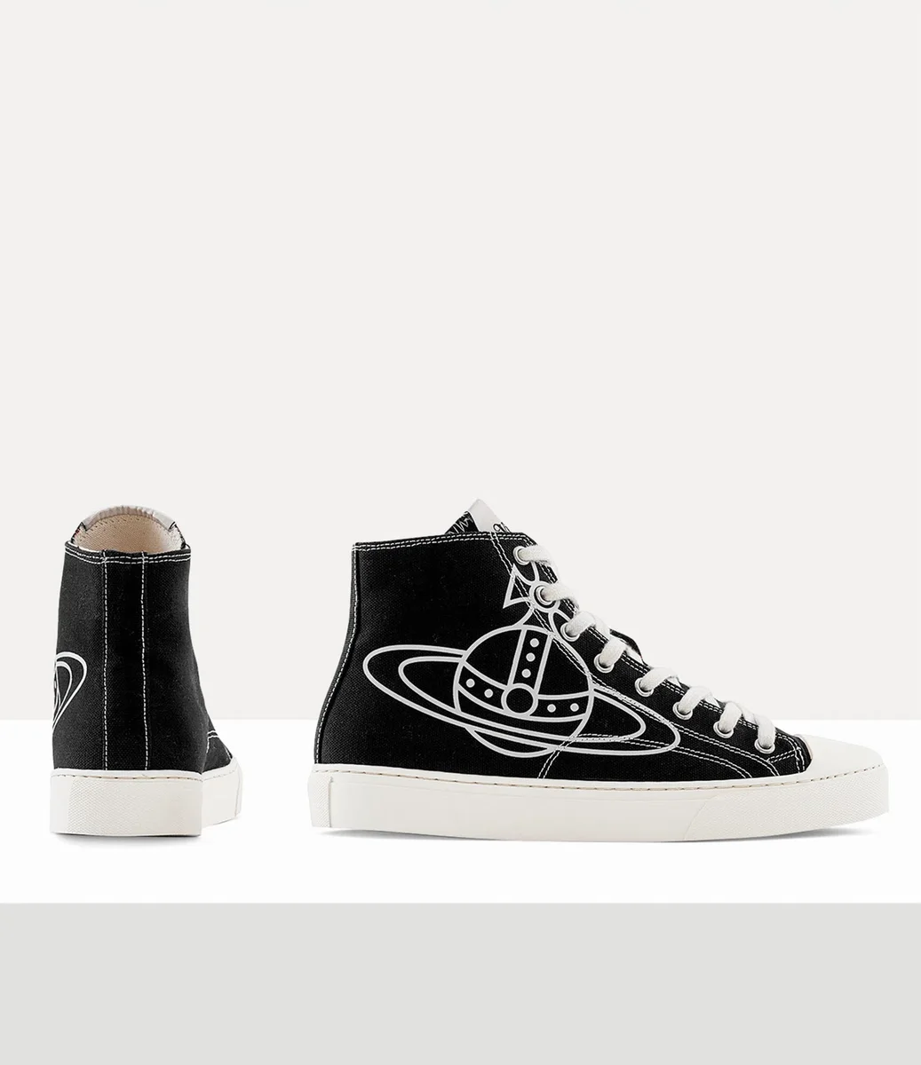 Vivienne Westwood High-top Canvas plimsolls features the house’s archival ‘Line Orb’ motif, adorned with a woven label on the tongue.